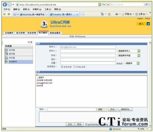 電子郵箱具有與Notes或OutLook相同的功能,可以通過設定Email服務的參數,實現公司內部收發(fā)Email,或通過Email服務器實現與Internet的通信。