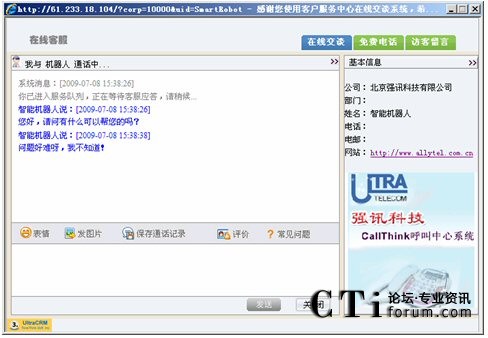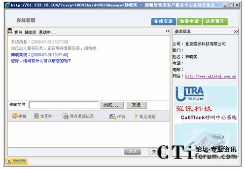 訪客可以通過(guò)點(diǎn)擊網(wǎng)站的 “客服”鏈接自動(dòng)選擇交談對(duì)象或點(diǎn)擊“客服人員”進(jìn)行交談。