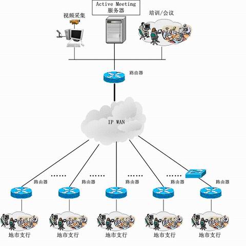 針對(duì)南京興業(yè)銀行的網(wǎng)絡(luò)和營業(yè)網(wǎng)點(diǎn)的分布情況,網(wǎng)動(dòng)科技結(jié)合Active Meeting系統(tǒng)的特點(diǎn),推薦了“網(wǎng)內(nèi)架Server,20個(gè)營業(yè)網(wǎng)點(diǎn)同步互動(dòng),后期冗余擴(kuò)充”的方案,采用這種解決方案的優(yōu)點(diǎn)非常明顯: