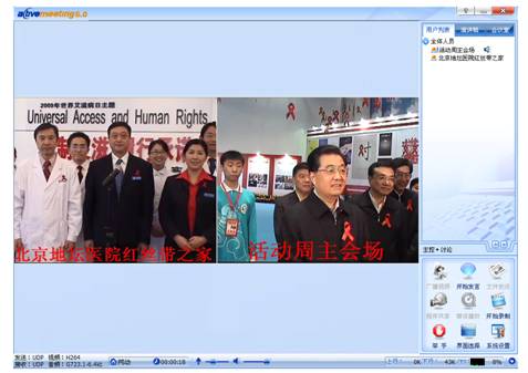 網動在為首都防治艾滋病志愿者活動現(xiàn)場提供的清晰流暢的視頻會議服務成功的實現(xiàn)了胡錦濤同志代表黨中央向地壇醫(yī)院為防治艾滋病做出貢獻的廣大醫(yī)療工作者和志愿者表示了誠摯的問候。網動為保障此次胡主席高清、流暢、面對面般視頻通話過程提供了強有力的技術支持。