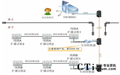 隨著防爆工業(yè)以太環(huán)網在煤炭企業(yè)應用的成熟,大唐高鴻公司推出了基于IP的煤礦擴播通信系統(tǒng),可以完美的解決上面提到的問題。