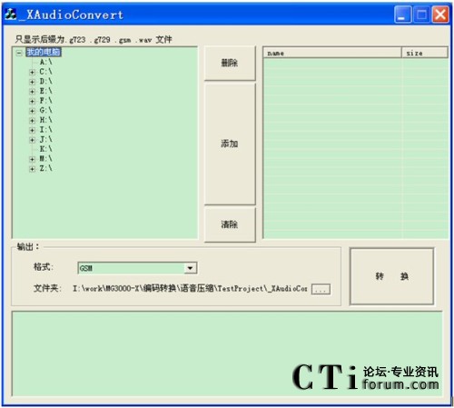 通過上傳方式提供的語(yǔ)音文件,需要通過軟件AudioConverter把wav格式轉(zhuǎn)換成MG3000-X所使用的文件格式。如下圖所示: