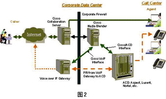 ----采用基于Internet的呼叫中心與電子商務(wù)網(wǎng)站相結(jié)合的體系結(jié)構(gòu),是實(shí)現(xiàn)競(jìng)爭(zhēng)優(yōu)勢(shì)的重要手段。通過(guò)將呼叫中心與Internet集成為一體,可以提供自我?guī)椭、協(xié)同合作、基于技能的路由、集成回叫、電子郵件路由、自動(dòng)電子郵件響應(yīng)、集成工作流程管理、預(yù)設(shè)的工作流程、動(dòng)態(tài)內(nèi)容整合等諸多功能,從而實(shí)現(xiàn)網(wǎng)絡(luò)客戶(hù)互動(dòng)。Cisco客戶(hù)互動(dòng)套件(CCIS)正體現(xiàn)了這一思想。