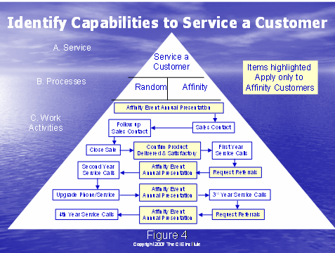圖4中的全部圖片推翻了所需的服務客戶的行動。這兩種方法提供了不同的過程以達到這個結果。在這個部分的底部,C. 工作行動,這些方格體現(xiàn)了頂端開始的行動,和經(jīng)歷之前描述的獲得和保持客戶的過程。