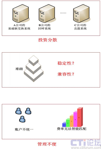 很多運營者常常都是最初搭建一套基礎(chǔ)的VOIP運營平臺,之后出現(xiàn)回呼業(yè)務(wù),購買一套回呼系統(tǒng)與原系統(tǒng)對掛接,然后發(fā)現(xiàn)直撥業(yè)務(wù)在國際話務(wù)中優(yōu)勢明顯,于是又搭建一套直撥系統(tǒng)。
