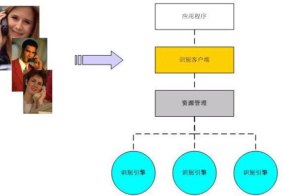 一個(gè)語(yǔ)音識(shí)別系統(tǒng),主要包含有語(yǔ)音識(shí)別的客戶端模塊、資源管理模塊、識(shí)別引擎以及與應(yīng)用相對(duì)應(yīng)的應(yīng)用程序。