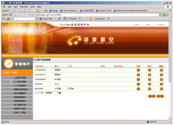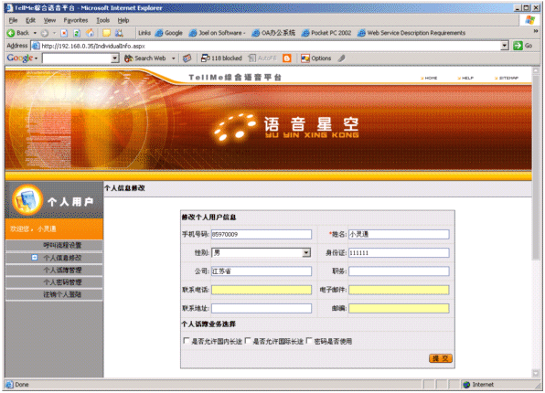 結(jié)合平臺(tái)座席與個(gè)人語(yǔ)音電話本實(shí)現(xiàn)給注冊(cè)用戶實(shí)現(xiàn)個(gè)人秘書服務(wù)。