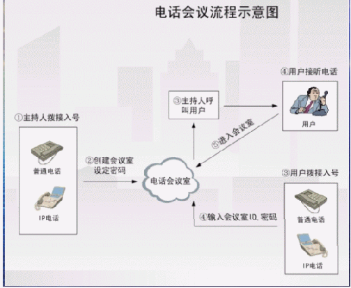 - 多方電話會議功能,最多可以實(shí)現(xiàn)16方通話。電話會議介紹(當(dāng)會議室中僅有一個人的時候,聽到的是等待音樂)。