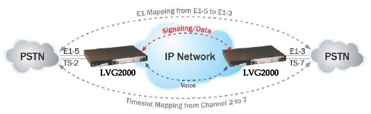 TDM隧道利用LVG 2000內(nèi)部的路由功能(不需要網(wǎng)守或MGC控制)從TDM (1 to 16 E1/T1/J1)或單獨(dú)時(shí)隙接收語音和數(shù)據(jù)流,轉(zhuǎn)換為在IP網(wǎng)絡(luò)上傳輸?shù)臄?shù)據(jù)。