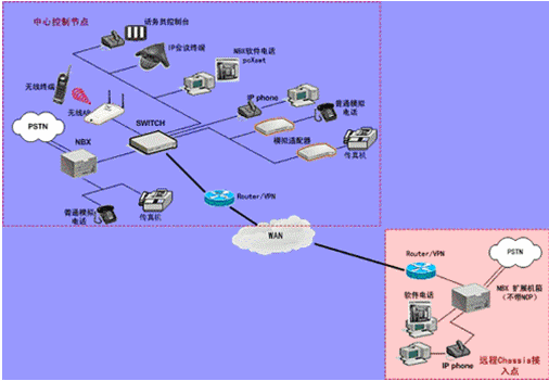 IPPBX將成為企業(yè)辦公不可缺少的一部分。此方案適合于已經(jīng)有PBX的公司,由于先期已經(jīng)投入了PBX設(shè)備,費(fèi)用昂貴,所以不會(huì)輕易被替換。在外地有多家分公司,使用傳統(tǒng)電話通訊費(fèi)用很高,希望能降低成本。并希望在分公司所在城市可以通過當(dāng)?shù)氐腜STN落地,節(jié)省長途費(fèi)用。依照客戶的需求,我們制定了以下方案: