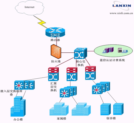 在此形勢下,解放軍后勤工程學院積極探索,尋求現(xiàn)代校園網(wǎng)建設的新出路。經(jīng)過對各種方案的收集整理,解放軍后勤工程學院與重慶電信達成共識,一起共謀現(xiàn)代校園網(wǎng)建設新模式:重慶電信負責提供網(wǎng)絡帶寬及軟硬件資源,依賴其深厚敦實的技術后盾及多年豐富的建網(wǎng)經(jīng)驗,攜手信利公司的藍信認證計費系統(tǒng)為校方提供一套從硬件到軟件的完整解決方案,讓廣大師生能快捷方便地享受更加豐富的網(wǎng)絡服務;而校方依據(jù)當前網(wǎng)絡狀況,可以對使用用戶進行行之有效的管理和維護,徹底解決了校方之憂,開辟了當前形勢下的新天地。