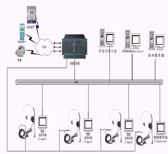 一類是基于傳統(tǒng)的PBX方式,為專用排隊機結構,該結構基于自動話務分配,稱為交換機解決方案另一類是基于unPBX方式,為工控智能交換平臺結構,主要基于工控機和語音板卡,稱為工控機解決方案