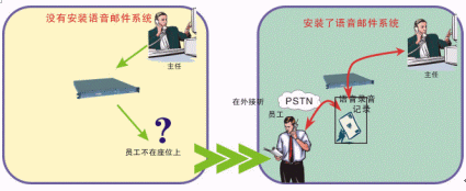 外出時將電話轉到手機;忙時將電話轉到語音郵箱;出差時,如果是到分支機構,可以很方便地將原來的分機綁定到分支機構的電話上,從而接聽客戶打到他原來分機的電話;如果是沒有分支機構的地方,也可以通過自帶的軟件電話來接聽或撥打電話,甚至是視頻交流,并且無需支付額外的通信費用。