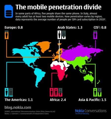 諾基亞《手機世界分布圖》顯示歐洲普及率最高
