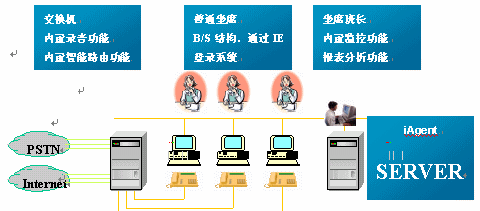 在傳統(tǒng)PBX/ACD的功能基礎(chǔ)上,增加了自動語音交互、數(shù)字錄音、預(yù)測撥號、話務(wù)分配、集中監(jiān)控、質(zhì)量管理等功能,提供了一系列相關(guān)軟件包或軟件接口,以便搭建功能強大的企業(yè)級呼叫中心。同時系統(tǒng)還將電子郵件、語音郵件、視頻信息、傳真等統(tǒng)一為一個有機整體,通過普通電話、傳真機或計算機對這些消息集中管理、統(tǒng)一收取、統(tǒng)一發(fā)送,從而使用戶能獲得全方位的、快速的信息服務(wù)。