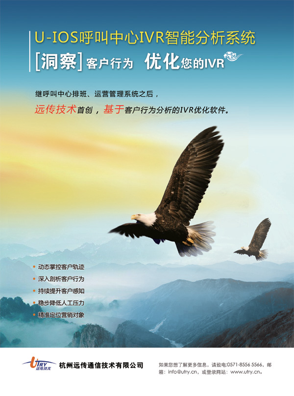 杭州遠(yuǎn)傳通信技術(shù)有限公司是國家高新技術(shù)企業(yè)、雙軟企業(yè),具備軟件成熟度CMMI 3級資質(zhì),是專業(yè)的客戶服務(wù)管理軟件及咨詢服務(wù)提供商。公司以“追求卓越”和“客戶滿意”為目標(biāo),致力于呼叫中心、營業(yè)廳等客戶服務(wù)渠道的管理提升和信息化。憑借著公司細(xì)致周到的服務(wù),扎實(shí)穩(wěn)健的技術(shù)實(shí)力,公司在電信、金融、保險、旅游、航空、電力、互聯(lián)網(wǎng)及電子商務(wù)等行業(yè)領(lǐng)域擁有著眾多的成功案例,獲得了客戶的廣泛贊譽(yù)。