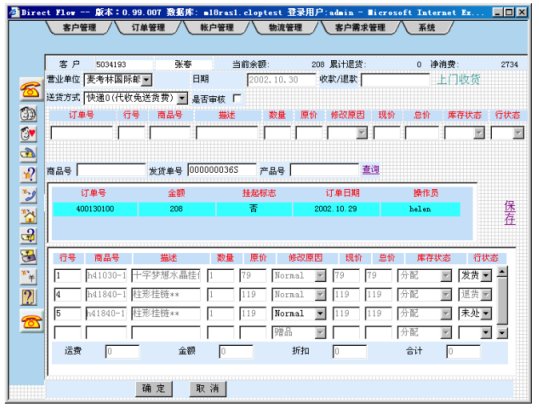 客戶根據(jù)麥考林提供的產(chǎn)品目錄告訴座席代表所需的產(chǎn)品和數(shù)量,并說明送貨方式、付款方式等信息,CRM軟件會自動計算客戶的消費金額,如果是老客戶或增在進行促銷活動,軟件會自動計算相應的折扣。如果某種產(chǎn)品缺貨,系統(tǒng)將告訴座席代表,并提供最近到貨日期供客戶參考。購買麥考林的許多商品,會有一些小禮品贈送,CRM軟件會根據(jù)客戶訂單列出客戶可以選擇的小禮品供客戶選擇。訂單輸入完成后進行訂單入庫操作,并根據(jù)訂單的屬性自動生成相關工單派發(fā)有關部門。