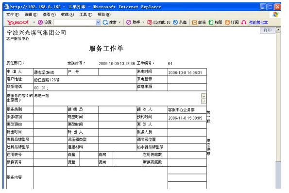 興光煤氣集團公司呼叫中心界面