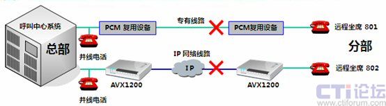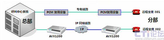 傲威通信采用AVX1200作為中心端和遠(yuǎn)程坐席端的復(fù)接設(shè)備,采用Hotline形式,只要遠(yuǎn)程坐席員摘機,中心端的呼叫中心交換機立刻接到摘機指令。當(dāng)有呼叫到來,遠(yuǎn)程坐席可像本地坐席一樣接聽電話,無任何差異。