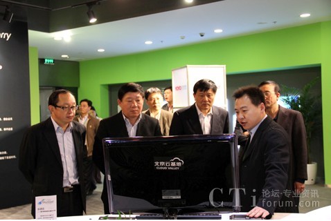 CTI論壇(ctiforum)3月29日消息(記者 潘婷婷):3月11日下午,上海市副市長艾寶俊、市經(jīng)信委主任王堅(jiān)、市經(jīng)信委軟件和信息服務(wù)業(yè)處處長朱宗堯等一行人專程來北京云基地,在寬帶資本董事長田溯寧、云基地公司董事長趙安建等人的陪同下對云基地進(jìn)行了參觀和考察!