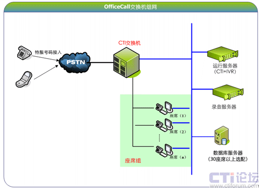 OfficeCall目前主要支持AVAYA IPO,阿爾卡特OXO等中小型的交換機(jī),與這些中小型交換機(jī)組網(wǎng),共同建設(shè)100座席以下呼叫中心系統(tǒng)整體解決方案,通過(guò)簡(jiǎn)化安裝配置和系統(tǒng)維護(hù),縮短系統(tǒng)上線時(shí)間,降低后期系統(tǒng)維護(hù)難度,減少系統(tǒng)的投資預(yù)算,為中型規(guī)模的呼叫中心系統(tǒng)提供更適合的解決方案。