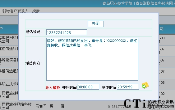 10.短信服務(wù):可以將客戶需要了解的內(nèi)容以短信方式發(fā)送到他的手機上,通過座席頁面即可實現(xiàn)短信發(fā)送、短信接收、短信群發(fā)、信息匯總等功能。