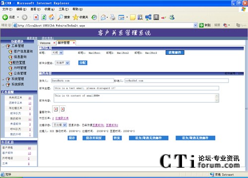 系統(tǒng)支持多個(gè)郵件隊(duì)列的管理,用戶可以根據(jù)業(yè)務(wù)的需要在系統(tǒng)管理中進(jìn)行郵箱設(shè)置。同時(shí)系統(tǒng)也支持多種模式的郵件處理,系統(tǒng)自動(dòng)分配、組長(zhǎng)手動(dòng)分配以及座席手動(dòng)獲取,以適應(yīng)不同業(yè)務(wù)的需要。