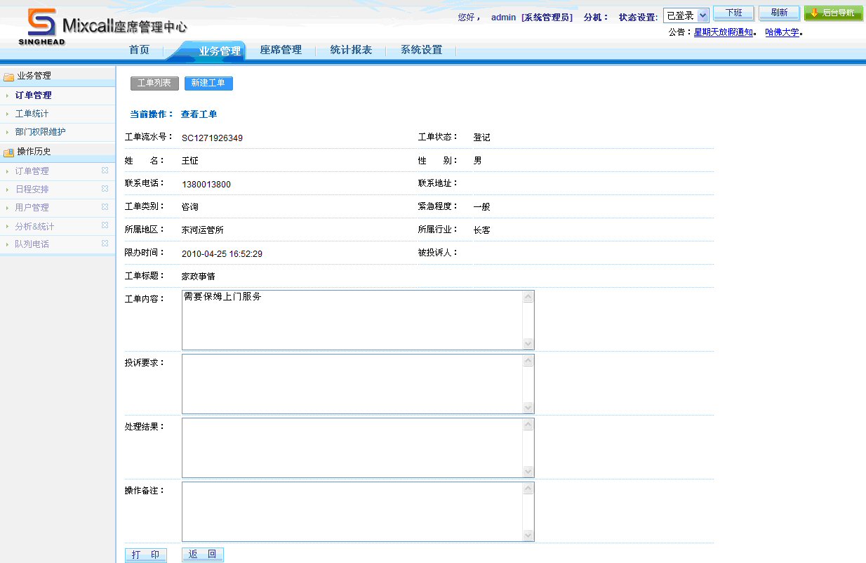 通過工單統(tǒng)計功能,座席人員可以看到所屬權限的所有工單和狀態(tài)。