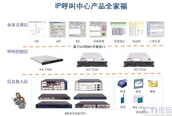 說明:網(wǎng)音呼叫中心系統(tǒng)結(jié)構(gòu)上分為業(yè)務(wù)支撐層、呼叫控制層、信息接入層。