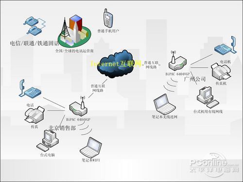 BiPAC 6404VGP其實(shí)就是一個(gè)VoIP語音網(wǎng)關(guān),VoIP就是一種把語音信號(hào)轉(zhuǎn)換成在網(wǎng)絡(luò)上傳輸?shù)臄?shù)字信號(hào)的技術(shù),它的應(yīng)用已經(jīng)非常成熟,我們經(jīng)常使用的QQ語音聊天功能也就是VoIP的一種表現(xiàn)形式。在所有大型跨國(guó)企業(yè)里我們幾乎都能看到VoIP技術(shù)的身影,這是因?yàn)殡娦胚\(yùn)營(yíng)商的長(zhǎng)途電話費(fèi)一般都不便宜,而我們企業(yè)的網(wǎng)絡(luò)使用費(fèi)一般又是包月的,通過無限包月的網(wǎng)絡(luò)打免費(fèi)的國(guó)際國(guó)內(nèi)長(zhǎng)途電話不就是占電信的便宜嘛?