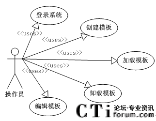 報表設計工具,主要功能是用來在可視化界面中察看和修改記錄統(tǒng)計,負責處理報表的設計工作。它應該具有全面的報表設計功能和友好的用戶界面,能夠被普遍的數(shù)據(jù)處理和編輯時所采用。該報表設計工具的操作員利用該工具可以進行系統(tǒng)登錄,創(chuàng)建模板,編輯模板,加載模板,卸載模板等,用例圖[30]