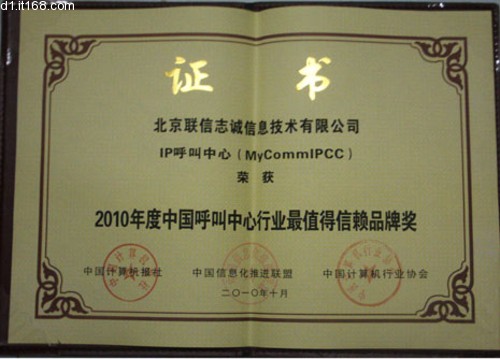 在本次評選中,北京聯(lián)信志誠信息技術有限公司(簡稱MyComm公司),其核心產品MyCommIPCC獨享 2010年度中國呼叫中心行業(yè)最值得信賴品牌獎。