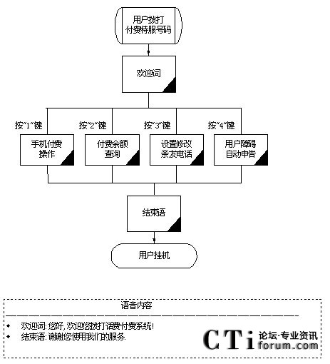 圖:IVR的語音付費(fèi)熱線系統(tǒng)流程圖