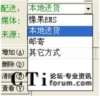 類:表示送貨方式,如下圖:A、B、C、D分別對(duì)應(yīng)橡果EMS、本地送貨、郵寄、其它方式(從上往下的順序),一般都為B即本地送貨的方式。