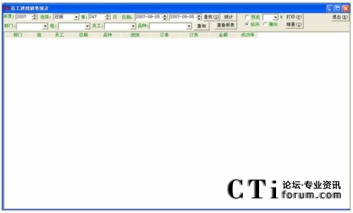 可以對(duì)進(jìn)線進(jìn)行日統(tǒng)計(jì)、周統(tǒng)計(jì)、月統(tǒng)計(jì)、季度統(tǒng)計(jì)、年度統(tǒng)計(jì),并分別可對(duì)部門、員工、品種等進(jìn)行組合式的查詢。