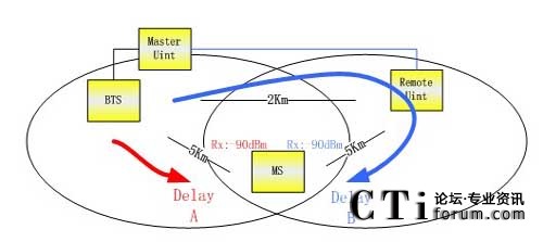 需要考慮GRRU站時(shí)延的引入對(duì)系統(tǒng)造成的影響?赡艽嬖诟采w區(qū)與施主扇區(qū)覆蓋區(qū)重疊的可能,如果兩重疊信號(hào)時(shí)延差小于4TA則不會(huì)造成任何問(wèn)題,這是GSM規(guī)范規(guī)定的。當(dāng)兩信號(hào)時(shí)延差大于4TA且信號(hào)強(qiáng)度相當(dāng)(差值小于10dB)則將導(dǎo)致手機(jī)掉話;因此,這時(shí)需要考慮選取背向光纖直放站覆蓋區(qū)的施主扇區(qū),這樣基站重疊區(qū)和直放站重疊區(qū)就不會(huì)產(chǎn)生多徑引起的掉話了,而是兩個(gè)扇區(qū)信號(hào)的切換。