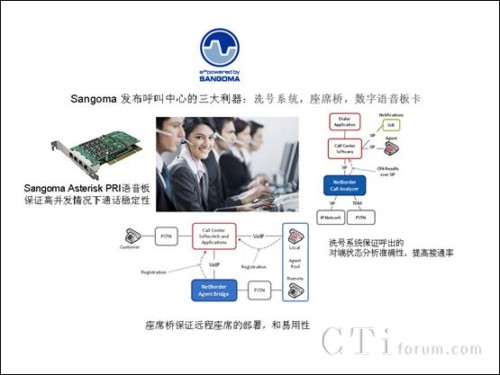 多年的北美通信市場(chǎng)和asterisk開源市場(chǎng)的磨練,和Sangoma產(chǎn)品通過在國際市場(chǎng)的經(jīng)驗(yàn),sangoma 發(fā)布的產(chǎn)品充分得到了呼叫中心國際廠商和asterisk 呼叫中心廠家的認(rèn)可,在洗號(hào)系統(tǒng),橋座席,語音板卡上面保證了呼叫中心的穩(wěn)定性,提高了呼叫中心的接通率,節(jié)省了座席遠(yuǎn)程管理的成本。同樣,Sangoma 也非常希望分享Sangoma在國外市場(chǎng)的成果,把卓越的產(chǎn)品帶給呼叫中心的廠家和客戶。
