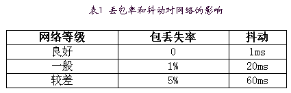 一般根據(jù)丟包率和抖動將網(wǎng)絡分為三級,見表1。