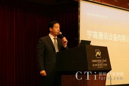 圖:宇高通訊設(shè)備有限公司中國(guó)區(qū)業(yè)務(wù)拓展總監(jiān)李濤闡述與華為的共贏合作案例以及宇高的產(chǎn)品和解決方案