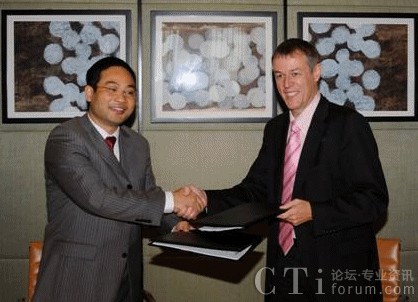 圖:華為無線產(chǎn)品線副總裁鄭葉來(左),與AIRCOM International首席技術官 Ricky Watts簽署技術合作協(xié)議。