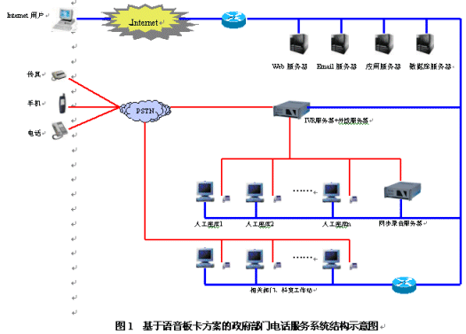 政府部門電話服務(wù)系統(tǒng)是一個(gè)集合電話語音、計(jì)算機(jī)網(wǎng)絡(luò)、數(shù)據(jù)庫(kù)等技術(shù)的綜合信息服務(wù)平臺(tái),主要由自動(dòng)語音應(yīng)答系統(tǒng)、人工座席和數(shù)據(jù)庫(kù)系統(tǒng)三部分組成。
