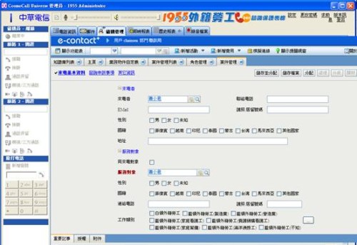 相信不久的將來,e-Contact+ 一定會(huì)成為各企業(yè)競(jìng)相爭(zhēng)購的明星產(chǎn)品!截至目前,確認(rèn)導(dǎo)入此套產(chǎn)品的公司包含臺(tái)北縣政府的個(gè)案輔導(dǎo)管理、中華電信的客服活動(dòng)關(guān)懷軟體、1955外籍勞工24小時(shí)咨詢保護(hù)專線,這三家公司透過業(yè)務(wù)自行定義物件中的調(diào)整客制化欄位,使用基礎(chǔ)模組的客戶管理,再配合其他相關(guān)模組物件導(dǎo)入,讓工作流程與資料再單一畫面下容易被管理。