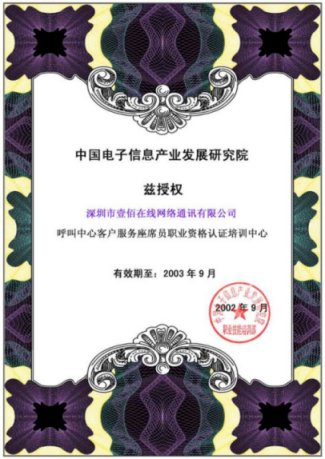 近日,中國電子信息產(chǎn)業(yè)發(fā)展研究院正式授權(quán)深圳壹佰在線網(wǎng)絡(luò)通訊有限公司為"呼叫中心客戶服務(wù)座席員職業(yè)資格認證培訓單位"。