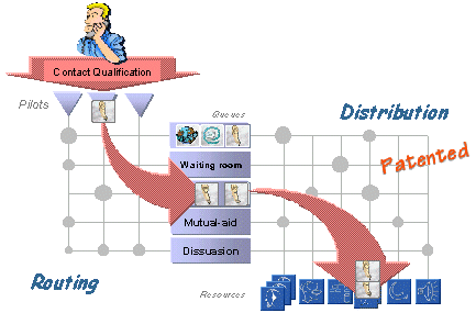 CCD智能呼叫分配器對經(jīng)過呼叫特性鑒別并進入引導系統(tǒng)的呼叫,通過路由選擇矩陣進入不同的等待隊列,并由第二個雙向分配矩陣進行資源選擇或呼叫選擇。CCD先進的雙矩陣分配方式,通過其獨特的技巧和費用最低的路由算法來管理呼叫業(yè)務(wù)和資源,其性能超過當前工業(yè)標準。這種呼叫分配算法的顯著特點之一是恰到好處地分離路由選擇、資源分配以及選擇呼叫三個過程,使其既相對獨立,又靈活選擇。而傳統(tǒng)的“矢量分配”法的主要缺點是僅從呼叫的觀點描述處理,缺乏對正空閑的資源該做些什么加以控制。