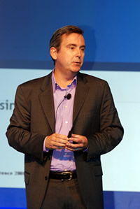 Alanche首先介紹了阿爾卡特朗訊集團的IT管理策略和先進的數據中心的實施。隨后,阿爾卡特朗訊企業(yè)網絡集團的重要用戶包括來自澳大利亞的AXA銀行、美國匹茲堡醫(yī)學院和泰國SIAM商業(yè)銀行的CIO都分享了他們在日常IT和企業(yè)通信管理中的如何利用動態(tài)企業(yè)的管理理念和解決方案,為企業(yè)的效率和競爭力提高貢獻了價值。貝爾實驗室的總裁