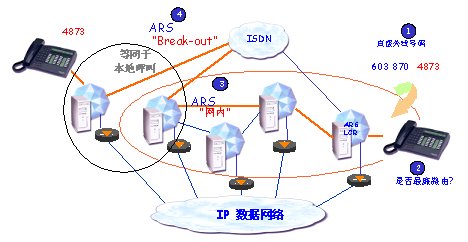 如果,一個網(wǎng)絡(luò)用戶想與一個外線用戶通話。ARS應(yīng)用程序分析所撥號碼。根據(jù)不同的呼叫方向,選擇最廉費用的運營商,而不管網(wǎng)絡(luò)內(nèi)的物理連接。地址信息將會被修改,從而符合該運營商的編號計劃(增加,刪除或轉(zhuǎn)換數(shù)字),并且被叫號碼和轉(zhuǎn)換后的號碼將會被存貯在呼叫詳細(xì)記錄(CDR)內(nèi)。