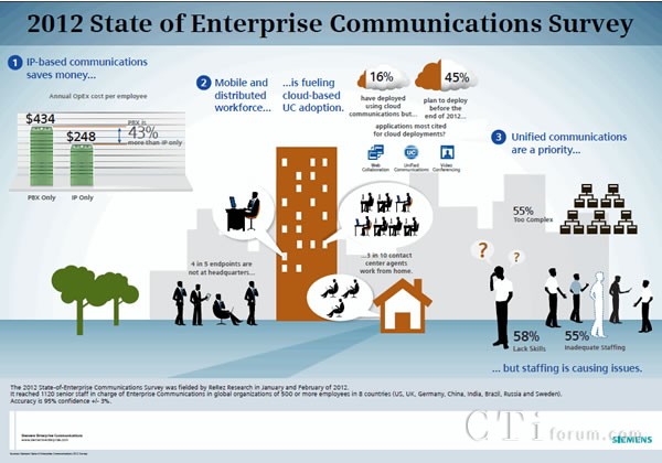 企業(yè)員工移動性的增加推動了向云方案的轉(zhuǎn)移,而IT人員有限的技能妨礙了統(tǒng)一通信的部署