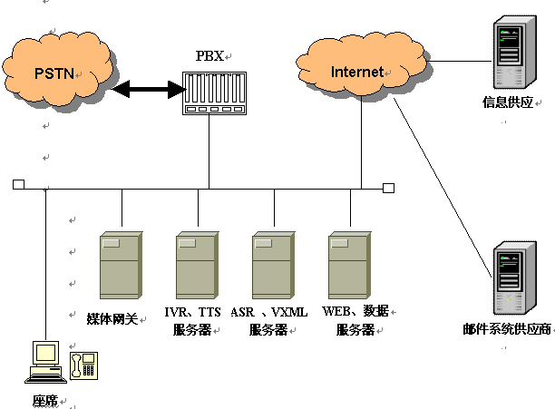 1.系統(tǒng)滿足多種接入方式訪問,包括固定電話、移動電話、PDA、計算機(jī)等;