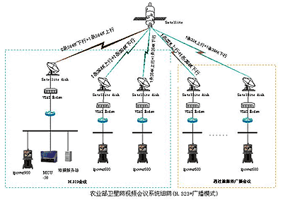 此次農(nóng)業(yè)部視頻會議網(wǎng)是構(gòu)建在基于衛(wèi)星網(wǎng)的IP網(wǎng)絡應用環(huán)境中,這是寶利通中國公司首次為客戶建設運行于衛(wèi)星網(wǎng)上視頻會議系統(tǒng)。系統(tǒng)構(gòu)建于基于ITU