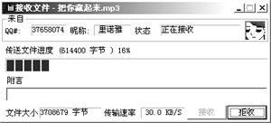 IM軟件能點(diǎn)對點(diǎn)的傳輸文件,有時候利用此功能要比使用E-mail還方便許多,當(dāng)然此項(xiàng)功能必須在對方在線時才能使用。在QQ的好友頭像上點(diǎn)擊右鍵,選擇“傳送文件”,選定要傳送的文件,點(diǎn)擊發(fā)送,等待對方接受請求。此外,ICQ的文件傳送功能還支持類似斷點(diǎn)續(xù)傳的功能,不必?fù)?dān)心文件傳送過程中發(fā)生突然中斷的情況。